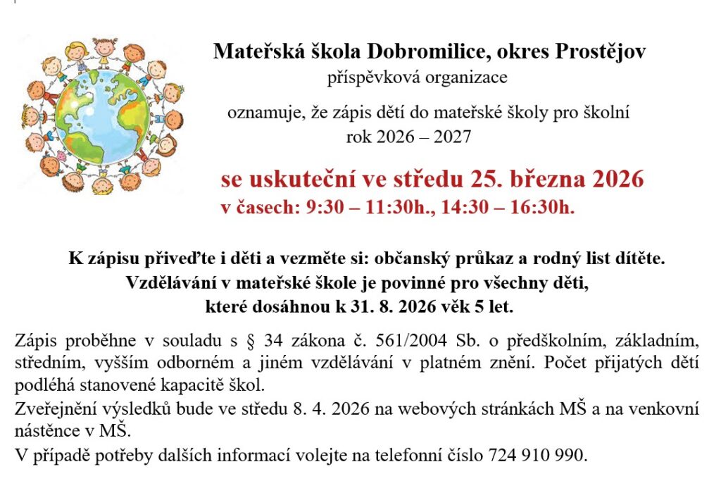 - Zápis dětí do MŠ na školní rok 2026 -2027